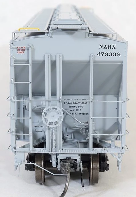 NAHX “Lapeyrouse 6-78” is one of the private leased offerings in this release of PS4750s. This car is a stunner with its correct NAHX gray hyper-accurate lettering and data. Built as part of the NAHX lease fleet, these cars feature body-mounted brake linkage routing between the bays, a center-tube train air line and Morton walkways. This is a very sharp looking car. The details list finishes with “early” Miner outlet gates and “Brenco-3” rotating caps on those gorgeous 100-ton Barber S-2 trucks. These cars are still in service on CN! The NAHX Lapeyrouse replica is available with 4 road numbers. Don’t miss out, these will go fast!